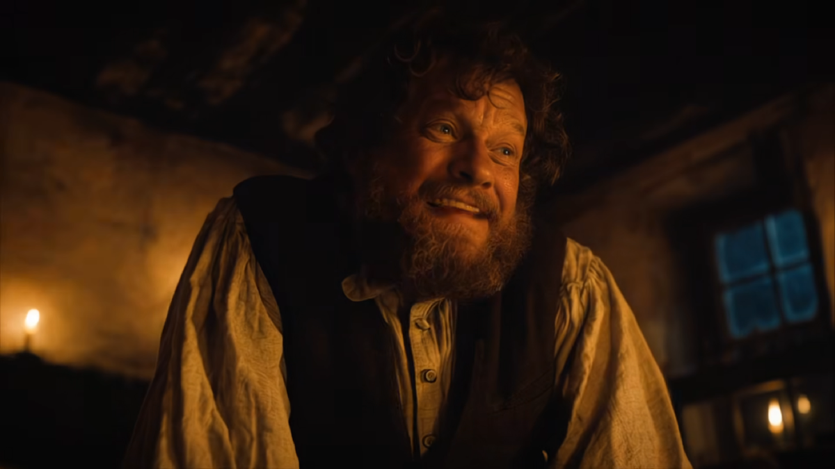 What follows are some shots artisticaly avoiding showing someone speaking, and a doctor devoid of any sort of expression entering a typhoid-riddled ship. The doctor enters the ship and shows him speaking two full words of his lip-synced sentence, before the prompts lead the camera to a man in a bed and freeze-framing on his face to reveal that man is Thomas Paine.