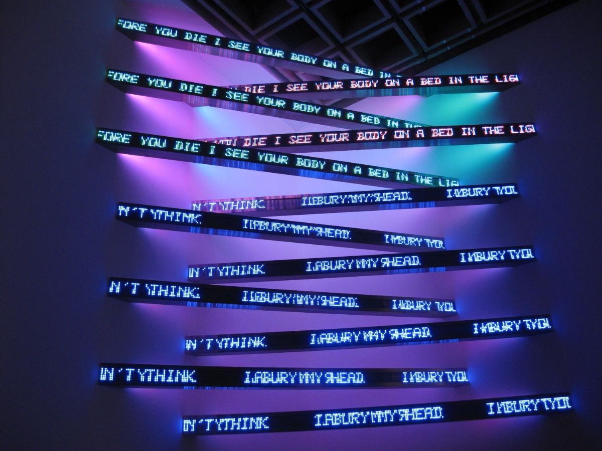 Today, as i was waiting for my 3 y.o. daughter’s tennis lesson to conclude, i found myself (as most of the time when i’m idling) browsing my neverending stream of blogposts, articles, and semi-funny memes. Until i came across this blogpost by the ever-so-delightful to read Dan Sinker about Jenny Holzer. I got giddy. I love Jenny Holzer, and especially her truisms. I’d have “abuse of power comes as no surprise” tattooed on a bicep (GET IT?) if it wasn’t so tacky.